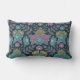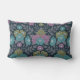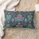 Cet oreiller rectangulaire à jetons présente des fleurs dans les tons violet, bleu et vert olive, entourées de frondes de fougères violettes muettes et de feuilles sur un arrière - plan bleu foncé.