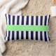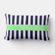 Coussin Rectangle Bleu Nuit Blanc Rayure Vert Menthe Nom Monogramme