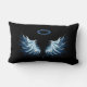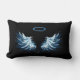 Coussin Rectangle Blue Glowing Angel Wings on black background