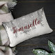Oreiller rustique magnifiquement conçu avec du bois gris clair, des pins hivernaux blancs et des flocons de neige. Personnalisez avec votre nom en bourguignon et établi en gris. Envoyez-moi un message si vous avez besoin d'aide ou si vous avez des demandes spéciales.