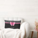 Coussin lombaire avec ruban rose sur un motif pois noir et blanc. Pour personnaliser, tapez votre nom dans le champ modèle.