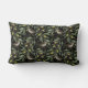 Cet oreiller rectangulaire à jetons présente des branches d'oliviers avec de petites flacons d'olivier assis dessus.