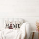 Ajoutez un peu de charme rustique à votre maison de vacances cette saison avec ce Buffalo rouge et noir plaid sapin de Noël Accueil coussin qui a un arrière - plan de laine blanche look bois slats ou shiplap avec des lettres noires pour les H M et E avec le Buffalo rouge et noir plaid sapin de Noël debout à la place de la lettre O.