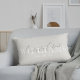 Coussin lombaire mariage conçu sur mesure pour les jeunes mariés, design beige moderne, nom et date personnalisés du couple.