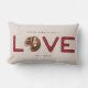 Cadeau idéal pour la Saint-Valentin, les anniversaires de mariage ou pour les jeunes mariés : cet oreiller photo moderne est facile à personnaliser avec votre photo préférée à l'intérieur d'un design typographique minimaliste LOVE. Le texte autour du mot LOVE peut être personnalisé. C'est la version gris charbon, rouge et rose clair.