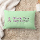 Le grand carreau avec la citation de cancer du sein et le ruban rose qui lit, "croient". Dans vert clair, (couleur curative)---lit ne disent jamais jamais jamais.