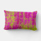 Un abstrait richement texturé dans les tons de chartreuse, vert olive, framboise, rose et fuchsia fait de cet oreiller de lancer attrayant.