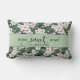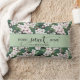 Personnalisé home sweet home lancer oreiller avec un motif de fleurs de cerisier sauvage sur un arrière - plan vert. Facile de changer le nom de famille en utilisant le bouton Personnaliser (ou omettre de laisser vide). Fait un grand cadeau pour le ménage.