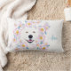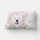 Coussin Rectangle Chien Samoyed et fleurs roses, nom customisé