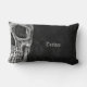 Macabre gothique effrayant noir et blanc grunge texture imprimer demi-crâne tête rectangulaire lombaire lancer oreiller. Éffrayant, déplaisant, mauvais, sinistre décoration unique de salon. Customisez votre script. Cool, tendance, design moderne inspiré d'Halloween. Copyright de l'image Marg Seregelyi Photography.
