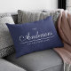 Ce coussin polyvalent de nom de famille avec une couleur arrière - plan avant et arrière modifiable présente votre nom de famille dans une police cursive élégante et sous une ligne mince, indiquer quand votre famille a été établie. Changez la couleur de ce coussin et faites-le correspondre à votre modèle de décoration de maison. Personnalisez-le en remplaçant le texte de l'espace réservé. Pour plus d'options comme changer la couleur de l'arrière - plan avant et arrière, la police et sa taille cliquez sur le bouton "Personnaliser". *Veuillez noter que le filigrane Zazzle qui apparaît dans l'aperçu du zoom n'apparaîtra PAS sur le produit imprimé final. © Bois de rose et agrumes
