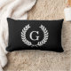 Coussin Rectangle Couronne de laurier en blé noir et blanc monogramm