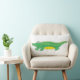 Le coussin présente une illustration originale d'un alligator de dessin animé vert et jaune, avec une impression jaune solide sur le côté arrière.