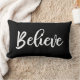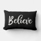 Croire l'écriture manuscrite| Oreillers de Noël avec motif de bison noir et blanc sur le dos. Design moderne de typographie de ferme par le boulevard Blackberry "Believe" écrit en caractères noirs sur un arrière - plan de couleur blanche solide. Autres couleurs disponibles en magasin. coussin parfait pour votre décor de maison de vacances.