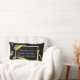 La conception élégante et personnalisée de décor de maison de coussin de date de mariage dans le noir et l'or lit "et elles ont vécu heureusement toujours" ensuite avec la date de mariage customisée dans les lettres blanches sur noir ajoutent l'initiale de monogramme, nom personnalisé, date, n'importe quel texte fait sur commande que vous souhaitez. Vue par le contour blanc avec les rubans métalliques d'or de faux dispersé et de fête. Cadeau de mariage unique et réfléchi ou cadeau d'anniversaire que les jeunes mariés aimeront.