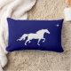 Belle élégante silhouette de cheval blanc et étoile sur arrière - plan bleu marine Lumbar Coussin.