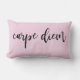 Élégant lombaire jetez l'oreiller en rose vif avec un texte élégant qui dit carpe diem, ou saisir la journée.