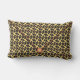 L'oeuvre originale de ZoeSPEAK sur ce Coussin Lumbar est un motif fait dans le style d'un sac d'embrayage d'enveloppe. Le sac est une cage dorée en lattique, bordée d'un tissu soyeux bleu foncé noir qui a un motif subtil de lignes circulaires et des reflets en bleu, rouge et vert. Il y a de minuscules boules rouges dans les espaces ouverts du treillis. Le rabat de l'enveloppe a une bordure rouge, et un gros bouton de boule rouge fermeture sous latticework or.