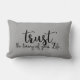 Arrière - plan gris avec citation en noir "Faites confiance au timing de votre vie" sur Lumbar Coussin. Taille du coussin et options de tissu. Recherchez d'autres produits de Simple Living.