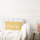Un oreiller lombaire jaune doré personnalisé avec le mot Famille en écriture cursive cœur blanc avec un monogramme de nom de famille personnalisable. Le design blanc sur jaune doré apporte une touche chaleureuse et joyeuse aux salons, chambres ou entrées. Tout le texte est entièrement modifiable pour personnaliser avec le nom de famille. Un cadeau significatif pour une pendaison de crémaillère ou une réunion de famille.