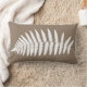 Silhouette de fougères de bois motif lombaire coussin adapté à partir d'illustrations botaniques vintages, numériquement crées et colorées, en blanc et taupe tan