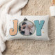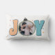 Cette conception festive d'oreiller de lancer comporte le mot "JOY" avec le "O" remplacé par un ornement photo personnalisable. Les couleurs joyeuses des vacances et les polices de caractères ludiques en font un complément parfait à votre décor saisonnier. Ajoutez votre photo de famille préférée pour créer une touche unique et personnelle pour les vacances. Idéal pour s'amuser pendant la saison festive ou donner à ses proches !