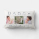 Ajoutez vos photos et message de Fête des pères à ce joli coussin lombaire personnalisé "Daddy We Love You". Un espace pour 3 images et un espace pour customiser avec vos noms en bas. Le texte est défini dans une police moderne en bleu et gris doux. Convient pour la Fête des pères, les anniversaires ou Noël.