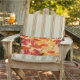 Appréciez l'automne avec ce beau coussin lombaire extérieur.  Il montre des couleurs de feuillage d'automne de rouge, d'orange, de jaune et de brun.  Customisez facilement l'arrière - plan orange pâle à la couleur cette les meilleurs costumes votre décor.
