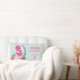 Un coussin de naissance commémoratif. Conçu comme une jolie illustration d'un flamant rose avec quelques pastèques et ananas. Couleurs rose et vert. L'été et tropical. L'arrière - plan est de couleur vert pâle avec des pois blancs.