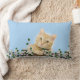 Fleurs blanches et gingembre Tabby Chat sur Coussin Lumbar bleu clair.