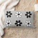 Coussin Rectangle Fleurs noires et blanches modernes sur gris argent
