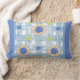 Add a cheerful touch to your space with this flower-themed lumbar pillow. It features playful yellow and blue sunflowers on a soft blue plaid background, accented with green and blue dots and solid blue edges for a cozy, decorative look.