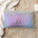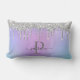 Glam moderne Parties scintillant argent gouttes Girly Feminine Luxury Monogramme Nom du script Coussin