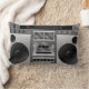 ghetto cool de style hip-hop rétrospectif, flaster boom box radio graphique. Nuances de gris argenté et de noir avec un magnétophone à cassette simple et réglage radio. Les gros haut-parleurs ont l'air que vous allez piloter un peu de basse. Copyright de conception © Cutecomfy.com