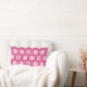 Coussin lombaire imprimé kimono japonais traditionnel - hexagones de nidification avec motif de fleur central dans le vin bordeaux profond, rose fuchsia et blanc sur un arrière - plan rose pastel