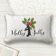 Cette conception comporte un pingouin tenant une branche de saint parmi les mots : Holly Jolly. L'illustration originale humoristique de l'animal fait un coussin lombaire de saison de Noël amusant et unique.