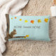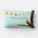 Écureuil mignon et feuilles d'automne sur le Coussin Lumbar bleu clair. Home Sweet Home texte peut être personnalisé.