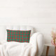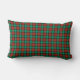 Un carré lance l'oreiller avec un motif traditionnel en plaid de Noël en rouge vif et vert, avec des accents noirs. Des oreillers à jetons ronds et rectangulaires assortis sont disponibles.