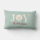Un joyeux lumbar de plage de Noël jetez l'oreiller avec le mot, JOY sur un arrière - plan en bois patiné. Le o dans le mot joie est remplacé par un dollar de sable. Personnalisez-le avec votre nom. Amusant pour votre décor de Christmas Beach. Conçu pour vous par Blackberry Boulevard.