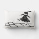 Un coussin rectangulaire au design noir et blanc charmant d'une jeune fille jouant au scotch, avec des détails de coeur sur sa robe. Une pièce douce et nostalgique, idéale pour les chambres pour enfants ou un décor maison ludique.