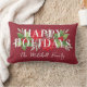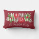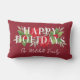 Cette typographie florale moderne lombaire de Noël lance l'oreiller avec le libellé "Joyeux Vacances" encadré par un élégant motif floral d'hiver et aquarelle verdoyante. Comprend des feuilles saints et des baies, des fleurs de poinsettia et des branches feuillues. Personnalisez le texte du script avec le nom de famille ou tout autre texte personnalisé. Arrière - plan rouge riche aux couleurs rouge, vert et blanc.