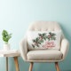 Oreiller décoratif avec texte Joyeux Noël et une branche verte de Saint-Arbre avec baies rouges.