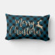 Coussin Rectangle Joyeux Noël d'or Noir et Bleu Plaid
