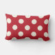 L'oreiller à jetons saisonnier est doté d'un design moderne de texte Joyeux Noël dans des couleurs rouges et vertes classiques avec un arrière - plan doux blanc / ivoire clair. Un grand motif à pois habille l'arrière du coussin.