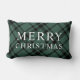 Ce design festif lombaire coussin est doté d'un élégant texte personnalisé "Joyeux Noël" et d'un classique chasseur / pin vert et en diagonale noir écossais écossais motif plaid arrière - plan. L'arrière - plan vert peut être customisé à toute autre couleur que vous préférez.