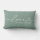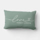 Moderne et élégant design lombaire sur mesure avec oreiller conception simple et minimaliste de la typographie "Amour" qui comprend des détails florissants et de coeur. Personnalisez le texte majuscule ci-dessous avec un monogramme pour un couple ou une famille, un devis ou un autre texte préféré. Les couleurs gris vert et blanc peuvent être modifiées.