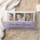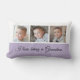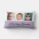 Idée cadeau, photo collage coussin. Ajoutez vos propres photos à cet oreiller à jets, Coussin Lumbar, coussin et changez le texte si vous le souhaitez. Six photos apparaissent sur ce coussin, 3 à l'avant et 3 à l'arrière. Dans l'exemple montré, le libellé "J'aime être grand-mère" est le même avant et le même arrière, mais vous avez la possibilité de changer à la fois à votre propre choix. Lilac et blanc avec texte noir.