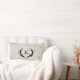 Oreiller monogrammé avec bois de cerf sur fond de planches de bois blanc soft de style cottage de campagne
