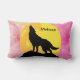 Silhouette d'un loup au sommet d'une montagne hurlant sur la lune avec un arrière - plan multicolore, il peut également être personnalisé avec n'importe quel nom que vous voudriez donner à ce coussin aussi.