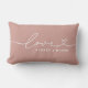 Moderne et élégant design lombaire sur mesure avec oreiller conception simple et minimaliste de la typographie "Amour" qui comprend des détails florissants et de coeur. Personnalisez le texte majuscule ci-dessous avec un monogramme pour un couple ou une famille, un devis ou un autre texte préféré. Les teintes rose et blanche poussiéreuses et neutres du rose peuvent être modifiées.